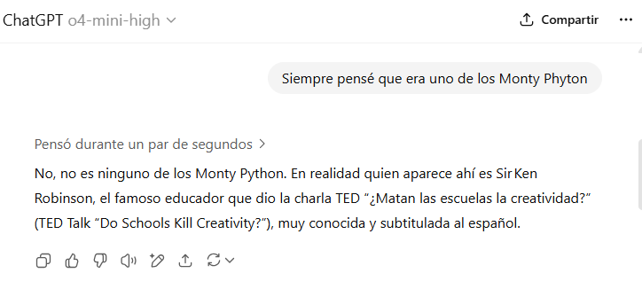 El personaje del vídeo era efectivamente un Monty Phyton, John Cleese, dando una charla sobre creatividad que es una delicia.